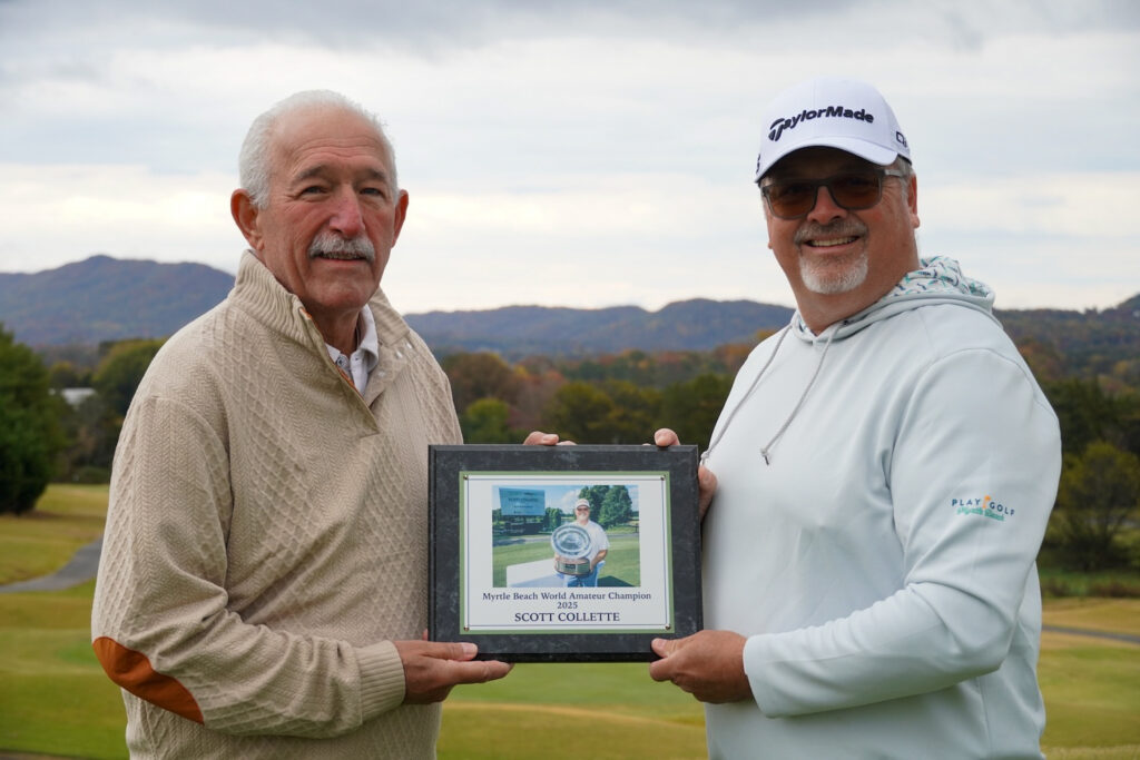 The Play Golf Myrtle Beach World Amateur Championship team traveled to Three Ridges Golf Course in Knoxville, Tennessee, to formally honor 2025 World Champion Scott Collette with an onsite trophy presentation at his home course.